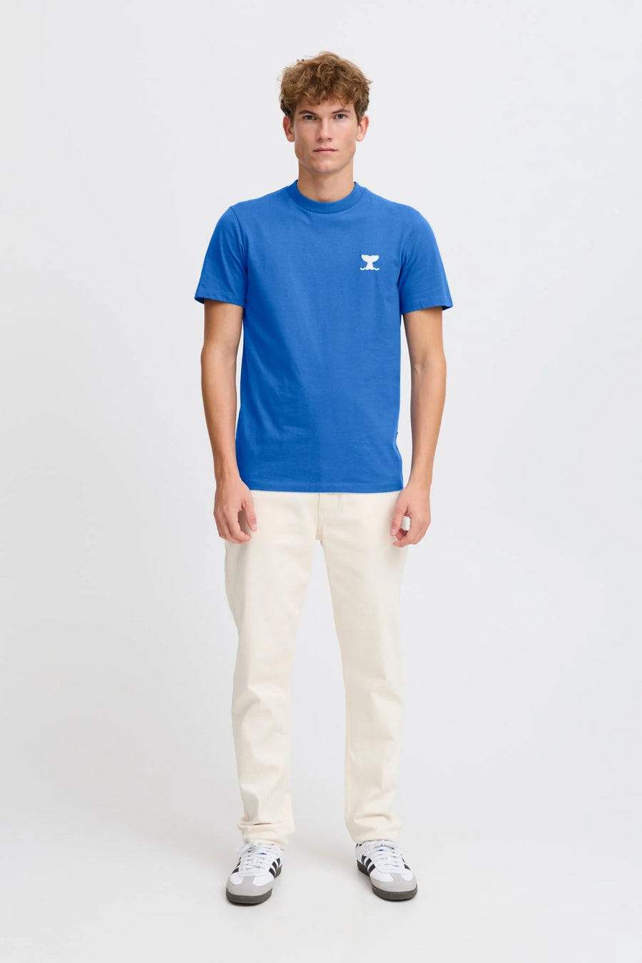 Get ready for summer with our CFSILAS TEE! This beautiful blue t-shirt features a cute embroidered whale tail on the chest, adding a touch of fun to any outfit. Stay stylish and playful with this must-have tee.