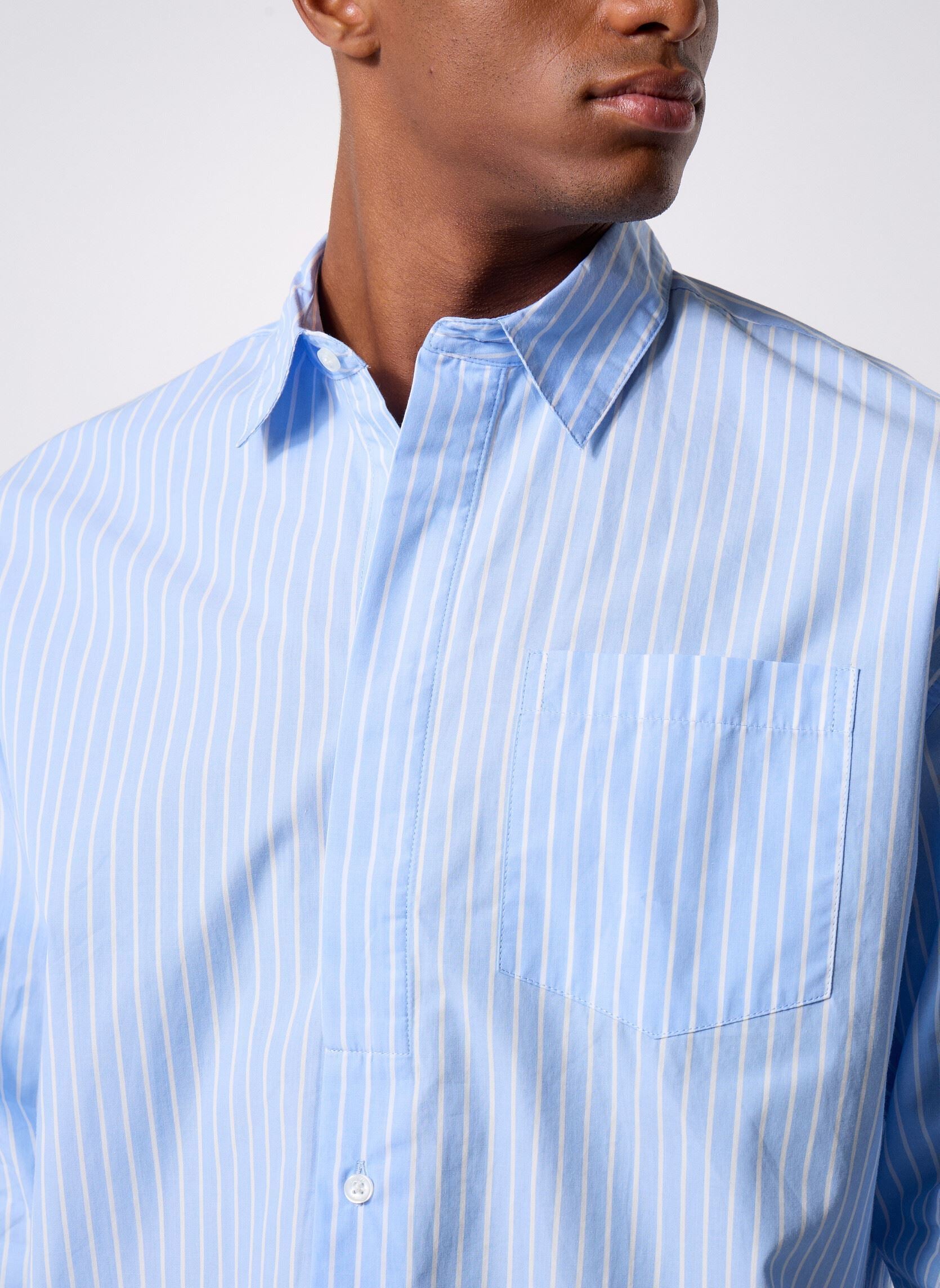 Discover the CFSIXTEN LS Wide Striped Shirt from Casual Friday, an iconic and essential shirt for any man's wardrobe. With its wide light blue stripes and mandarin collar, this long-sleeved cotton shirt will add a touch of unique style to your everyday outfits.