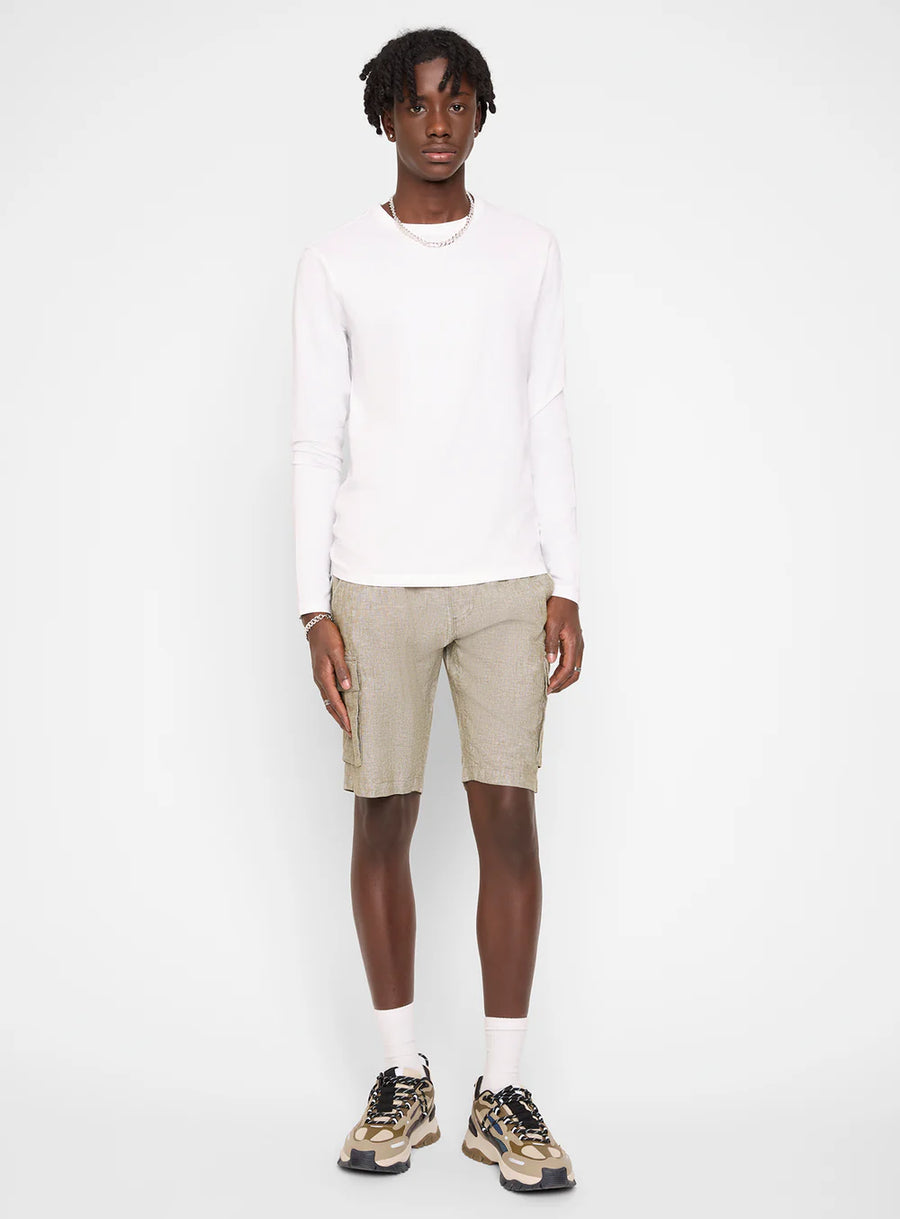 Linen cargo shorts, 11 inches in length, are a comfortable and versatile pair of shorts crafted from linen fabric. Linen is known for its lightweight and breathable properties, making it an excellent choice for warm weather. Cargo shorts typically feature multiple pockets, and in this case, they provide a functional and utilitarian aspect to the shorts. With an 11-inch inseam, these cargo shorts offer a moderate length, providing coverage while still keeping you cool in hot temperatures. The linen fabric adds a natural and textured touch to the shorts, contributing to a relaxed and casual style. The combination of the breathable linen and the cargo design makes these shorts suitable for various casual occasions and outdoor activities.