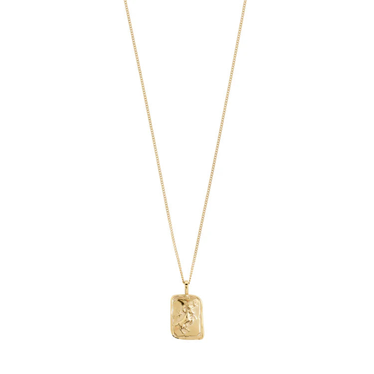 The STARS live within you! With the ARIES Zodiac Sign necklace from Pilgrim, you get a piece that is as unique as you are. A gold-plated chain with a square coin pendant in a dual design. Flip it for either a classic Aries zodiac motif or for your sparkling constellation with glittering Preciosa crystal stones - talk about cosmic coolness! The pendant has a rustic, handcrafted look that exudes an edgy, genderless look. A piece that is not only a personal statement, but also an ideal gift that carries a deeper meaning and connection to the stars. The necklace measures 40 cm + 12 cm extension chain and is made from 98% recycled material.