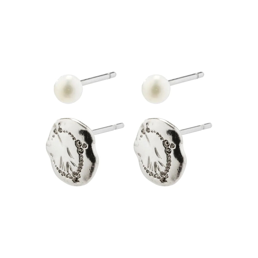 The Jola earring set is the perfect match for pearl lovers. An engraved handcrafted shield earring paired with a timeless pearl is the perfect balance to mix up your jewellery box.