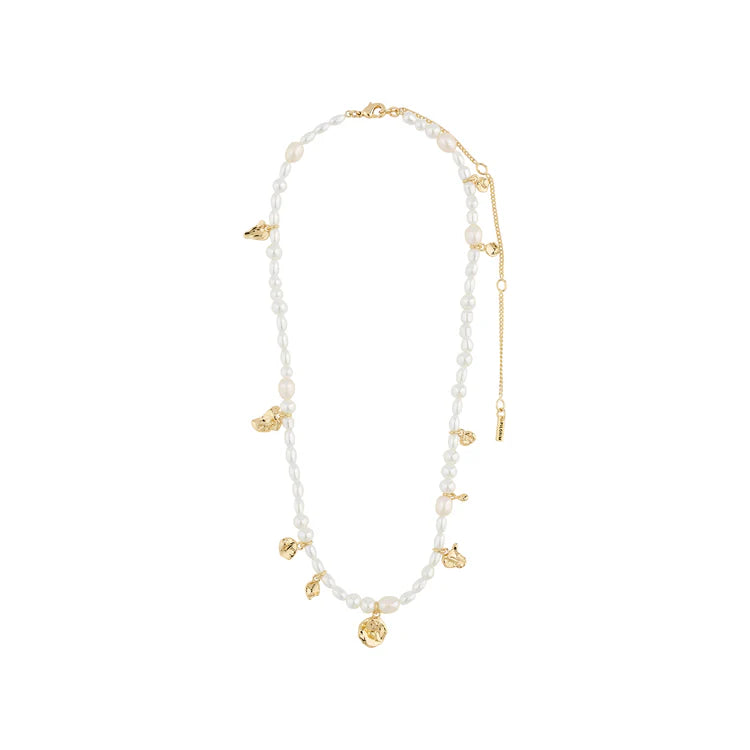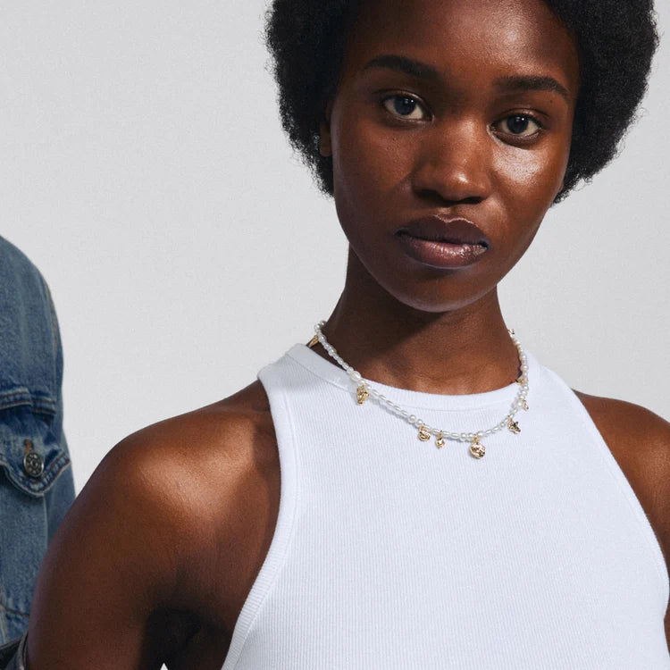 Focus your intent, direct your journey, and let the INTENT beaded necklace from Pilgrim lead the way. A beautiful composition of genuine freshwater pearls and pearlescent glass beads gives you an effortless on-point look. Gold-plated pendants in unique organic shapes add a natural vibe to the necklace. A piece that's sweet, romantic, and just right to mix and match with a coin pendant or a slim curb chain for a trendy layered look. Measures 38 cm + 12 cm extension chain.