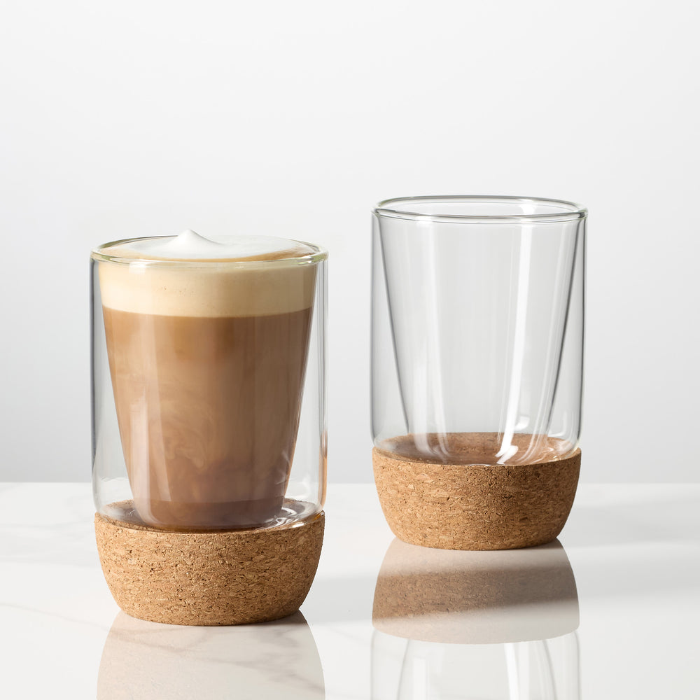 - Cork base insulates glass and keeps it cool to the touch