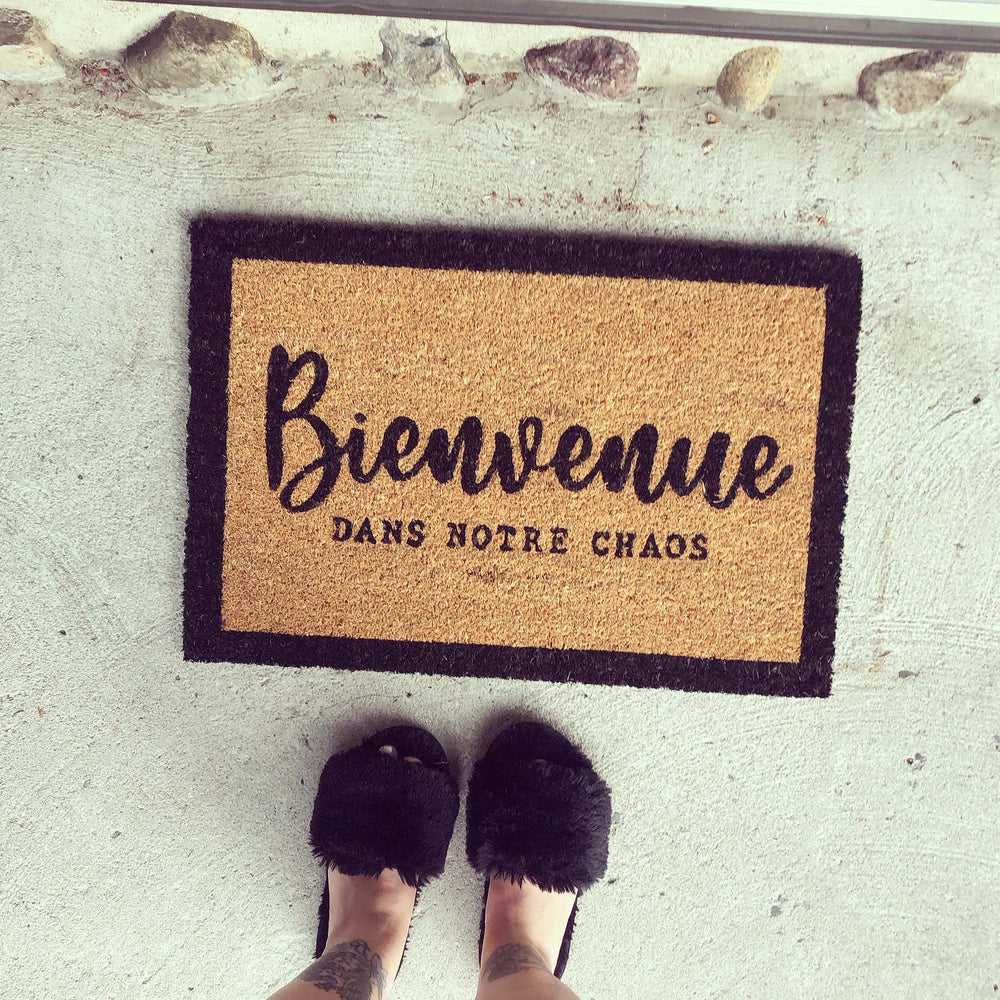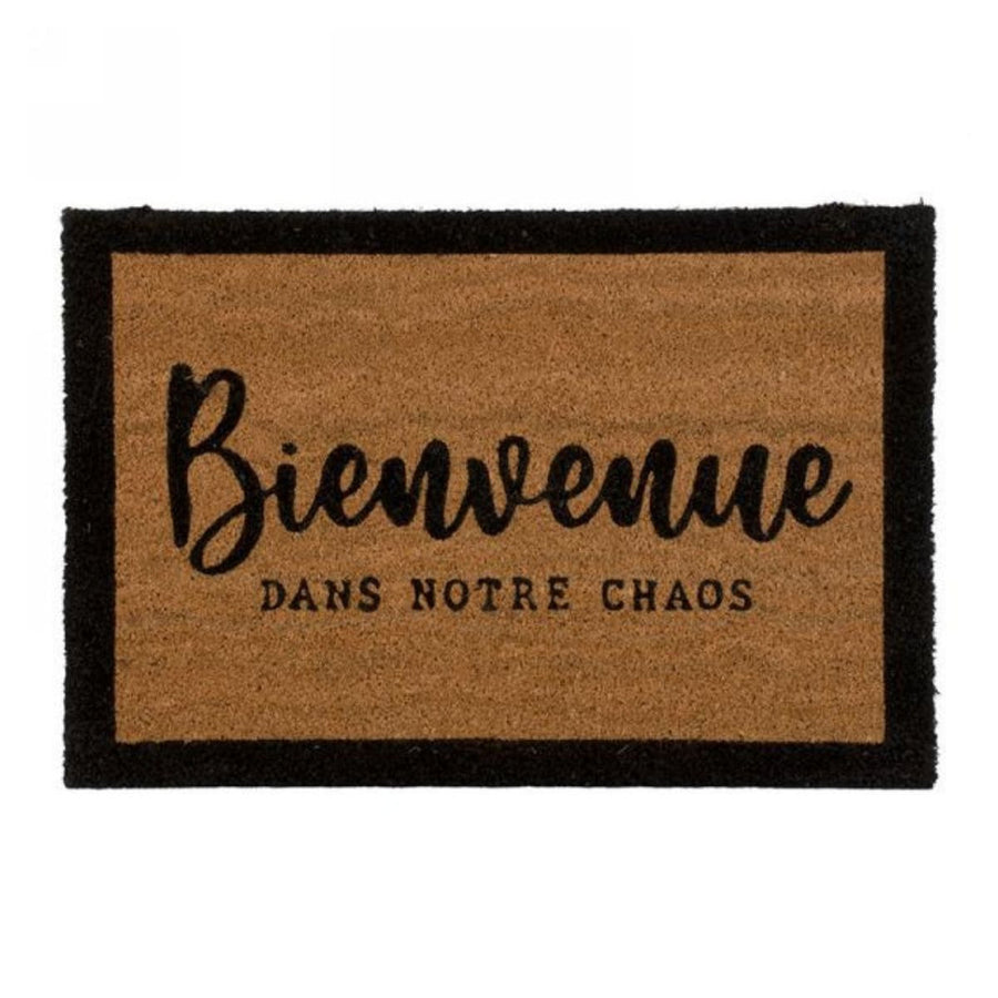 This carpet with the inscription "Welcome to our chaos" is intended to be humorous. He will bring a smile to the visit every time. We say coconut carpet because of its texture of coconut fiber hair.
