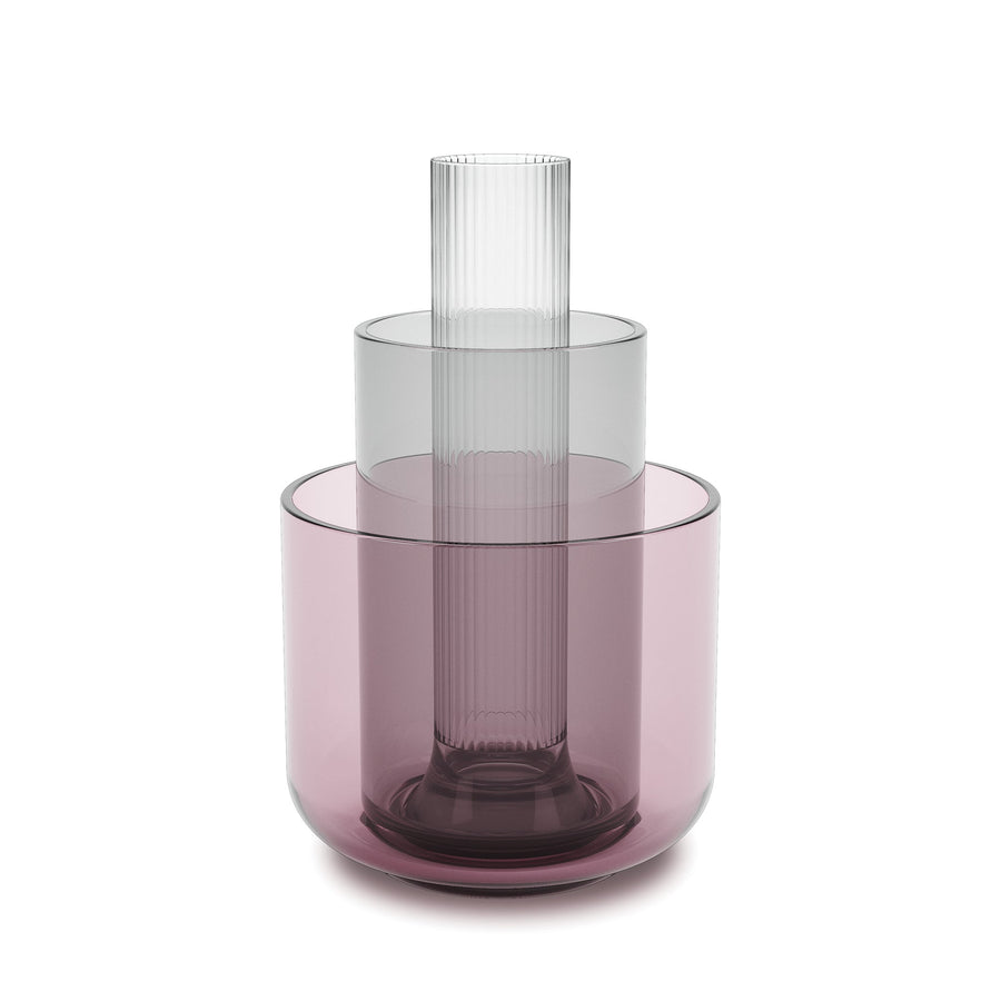 Layla vases can be stacked with one another to create a beautiful arrangement or be used to display on their own. With three different sizes and colors, use Layla to showcase your stems, candles and more. Each vase features a soft touch of color, while the tallest clear stem vase has a ribbed texture detail.