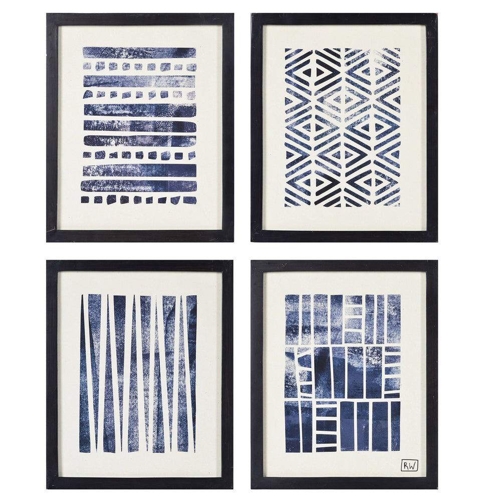 Set Of Four - Printed - Framed Under Glass - Black Frame