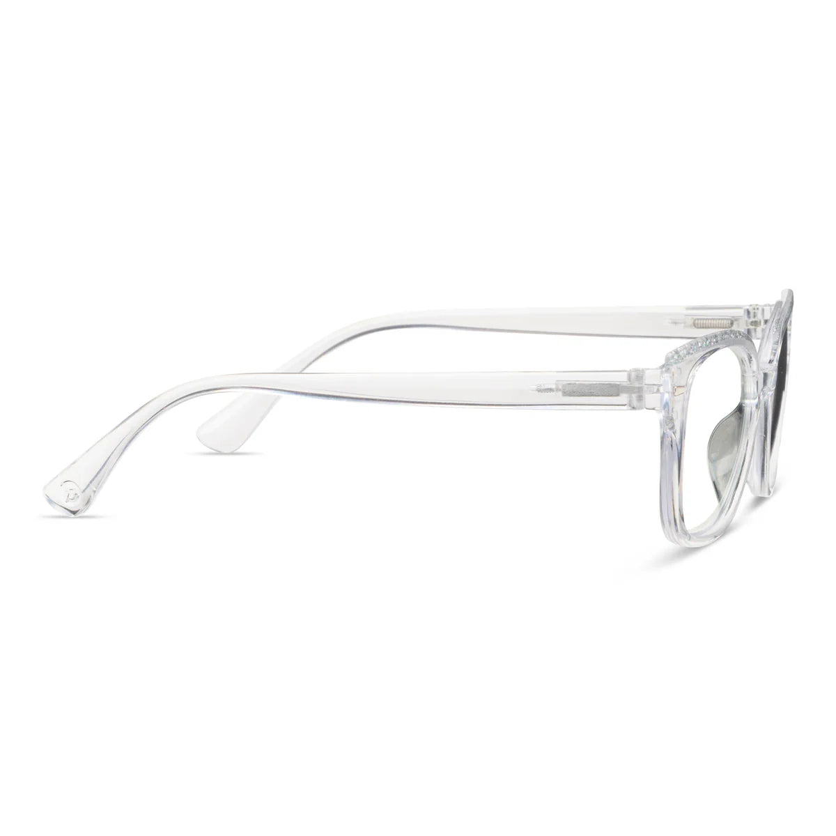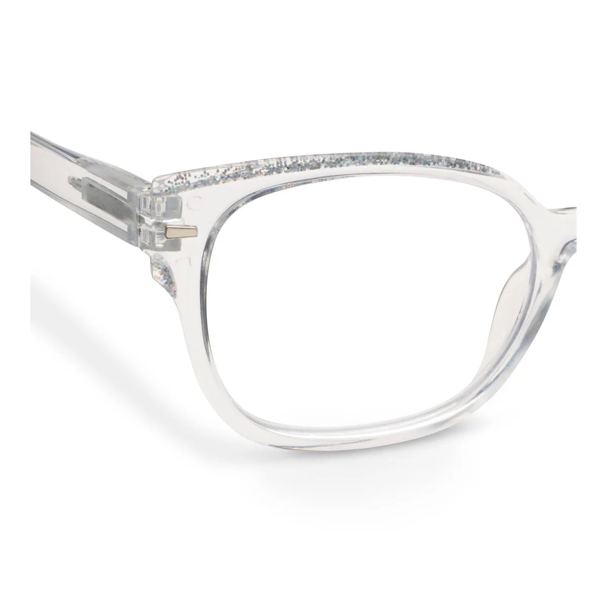 Glimmer adds a touch of flash and flair to the looks you love. These gorgeous glasses feature a unique step dimension effect, eye-catching gold rectangle pins, and alluring glitter finish that sparkles throughout the frames.
