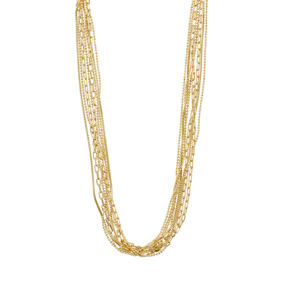 Stand out! This composition of eight delicate chains in different designs makes it all come together. The necklace consists of three different types of chains that give the jewellery both a casual and harmonious look. With this, you get a trendy and cool mix-and-match look with just a single piece of jewellery. What’s not to like? The necklace measures 38 cm and has a 9 cm extension chain.
