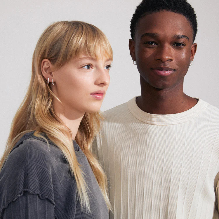 - Silver-plated rectangular hoops in two sizes