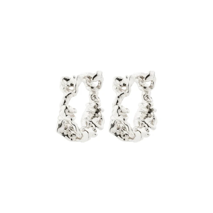 Keep it simple - and keep it cute! Silver-plated huggie hoops from the TRUST collection give you a touch of authenticity and an organic handcrafted feel - perfect for spicing up your everyday look. An easy-to-use click clasp makes them a practical choice for the busy fashionista, and the simple, rustic look goes hand in hand with the season's chunky knits and soft fabrics. The earrings are mindfully made with 99% recycled material.
