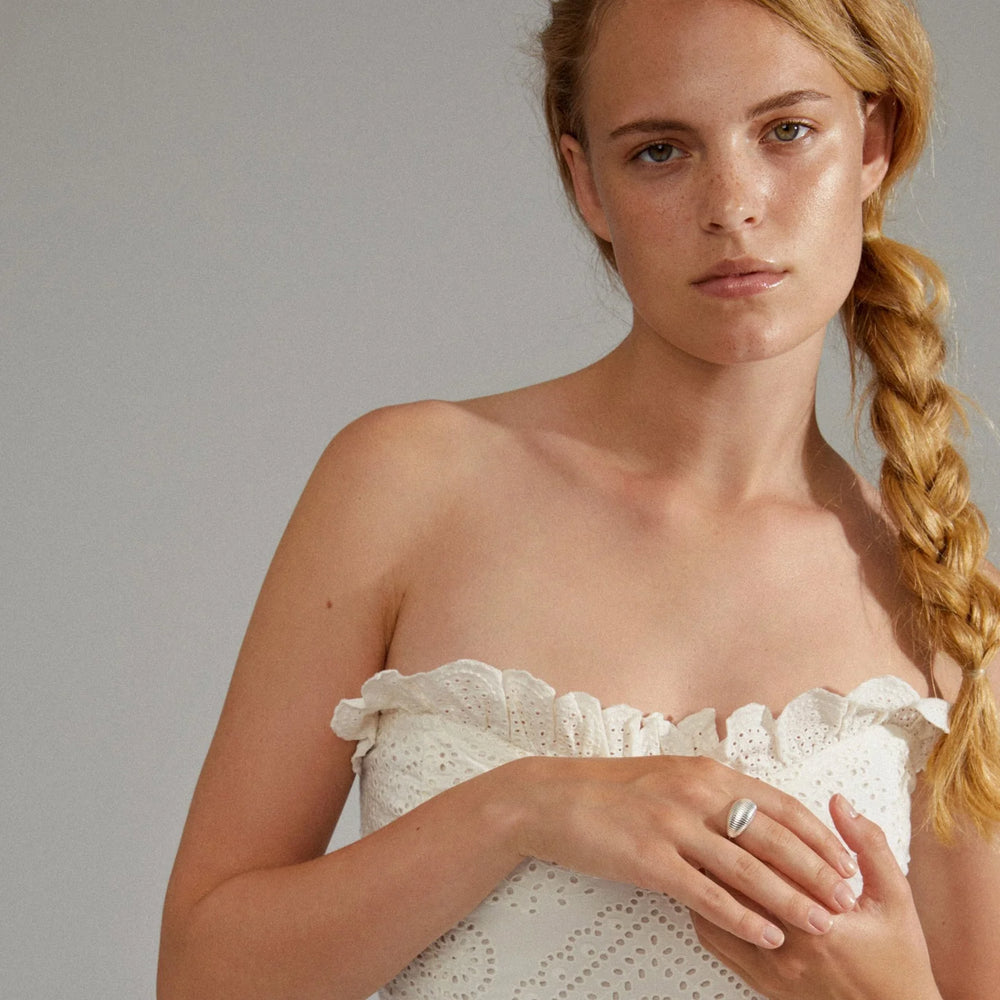 Get your groove on! Ring with a simple curvy design and a twist in the form of groove textures on the surface. A true classic, with lots of character and uniqueness. Let the ring shine on its own or style it with your favourite pieces for an upscale look. The ring is a recycled item and thus made from a min. of 75% recycled material.