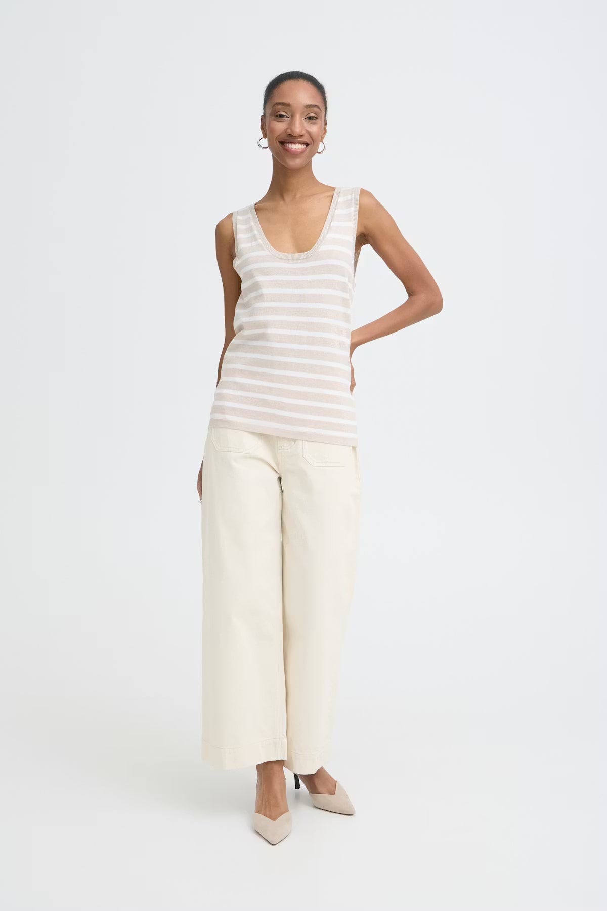 IHLULS TOP "SMALL OATMEAL WHITE STRIPE"