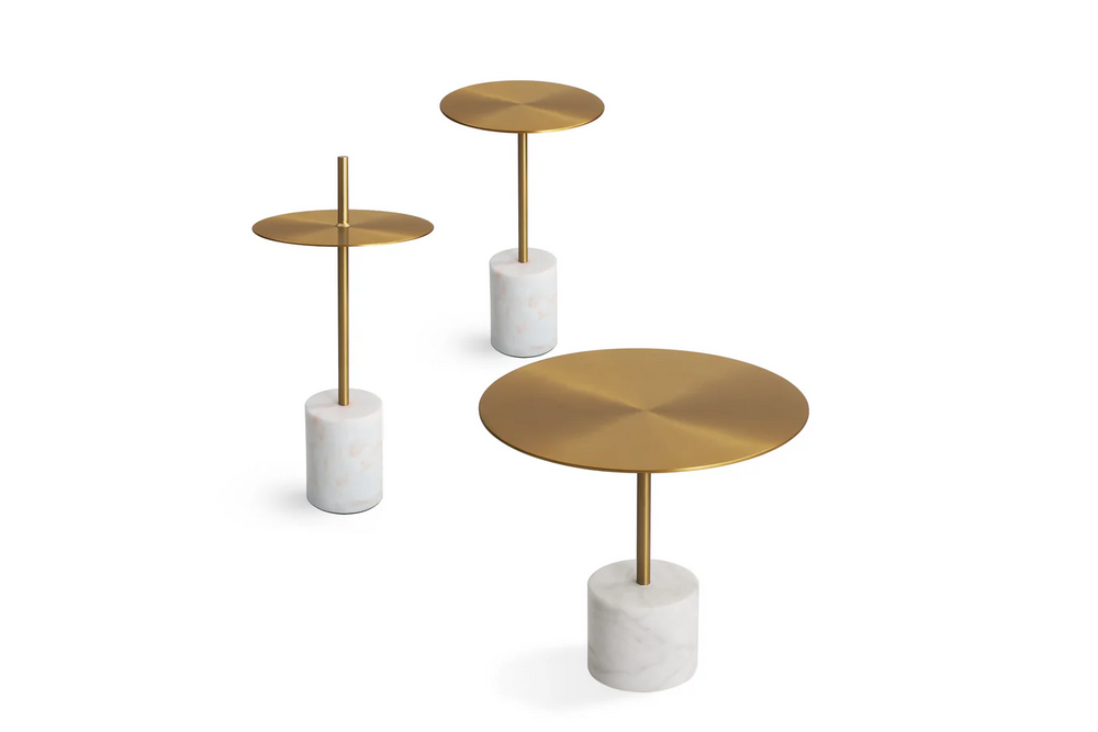 CIRCULO END TABLE - LOW ANTIQUE BRASS TOP/WHITE MARBLE BASE