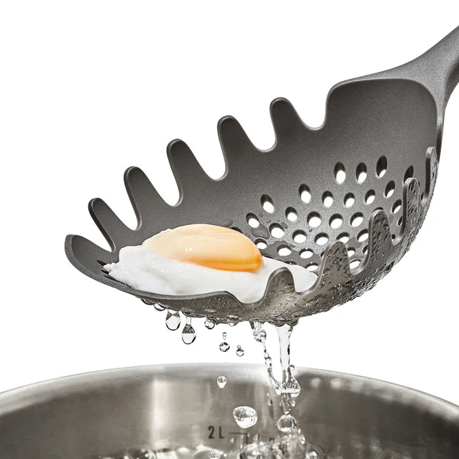 • The large-capacity scoop holds pasta, vegetables and poached eggs.
