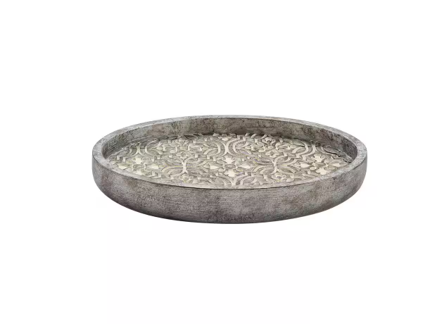 Part of the Marrakesh bath collection, this exquisite soap dish brings a touch of elegance to your bathroom. Made from high-quality resin, it features a dark grey hue with an intricate white floral pattern, creating a striking contrast. Its durable construction ensures long-lasting use, while the unique design adds a sophisticated charm to any decor. This dish combines beauty and functionality.
