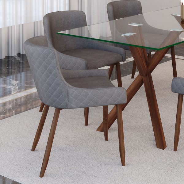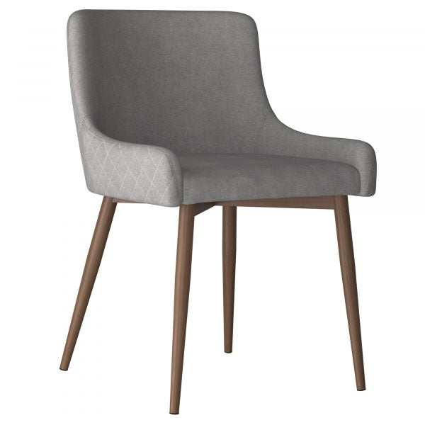 Find perfect, over-sized seating on this mid-century inspired dining chair. The contoured shape and plush, diamond-patterned tufting on the back provide comfort on one side and a dose of style on the other. Metal legs provide sturdy support and are finished in a warm walnut for an easy decor match. Great for a formal dining table or for everyday seating at the kitchen table.