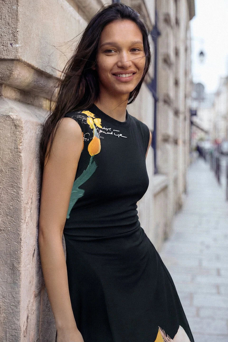 ASSYMETRICAL FLORAL DRESS "BLACK"