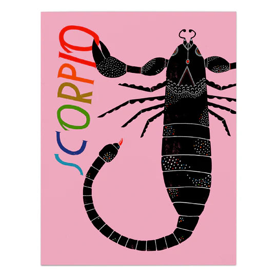 Are you a Scorpio or do you know one? Lisa Congdon brings her celebratory illustration to the zodiac with this greeting card, a slam dunk to commemorate birthdays from October 23 to November 21 and a sure bet for year-round that’s-my-sign pride.