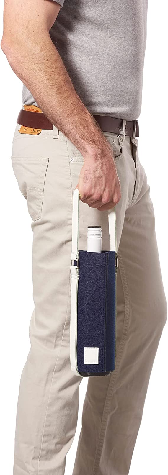 - Elégant porte-bouteilles en feutre avec poignée en cuir