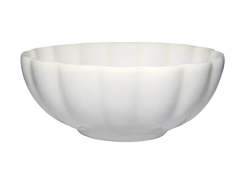 Bring the warmth of the Mediterranean to your table with Solare's scalloped ceramic dinnerware. Featuring a reactive glaze, scalloped edges, and stoneware in cream, each piece reflects sunlit days and coastal evenings