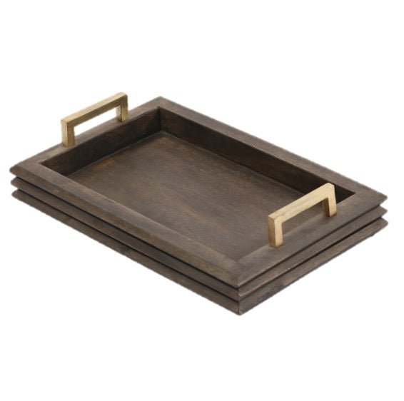 Tray - Mango Wood - Grey Chestnut Finish - Iron - Antique Brass Plated - Finish