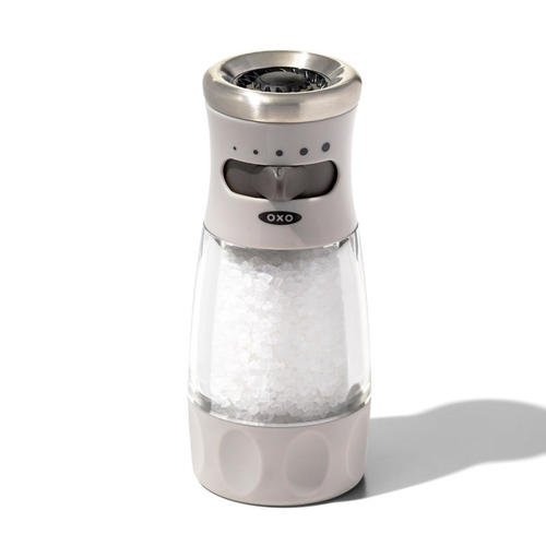 Le moulin à sel OXO Good Grips Contoured Mess-Free se distribue par le haut, pour moins de dégâts sur vos comptoirs.