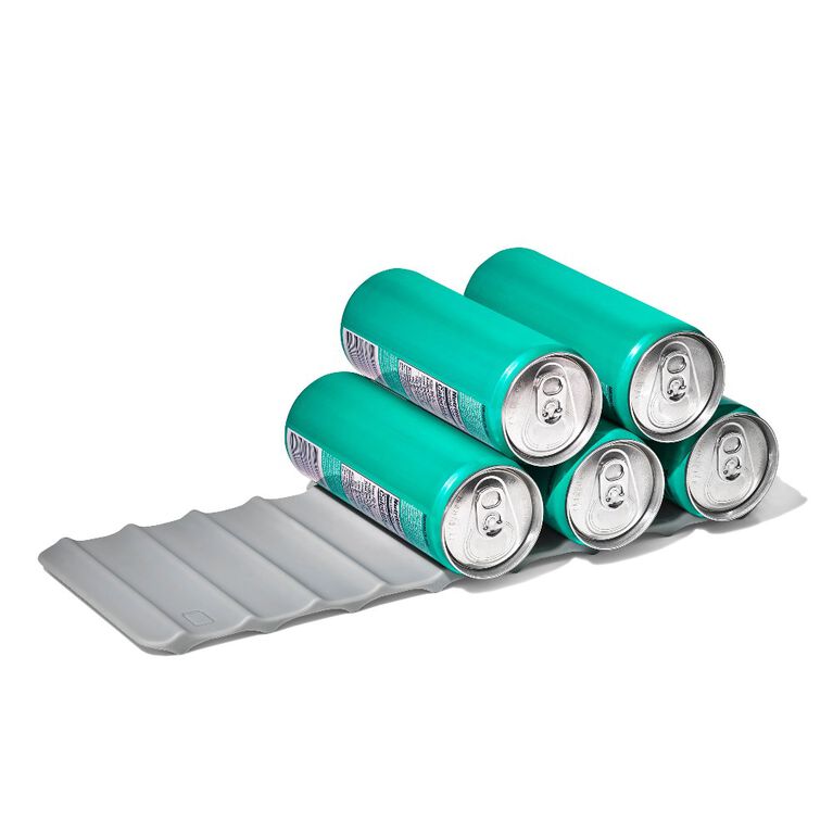 This space-saving, double-sided beverage mat accommodates 12 stacked cans on one side and a variety of bottles on the other side. Non-slip ridges keep beverages secure. OXO's Fridge-Focused Organization System features a combination of bins, drawers, shelves, and risers, to help streamline your refrigerator. The space-saving designs provide a clear way to keep food from getting forgotten and help prevent food waste. BPA Free. Dishwasher safe.