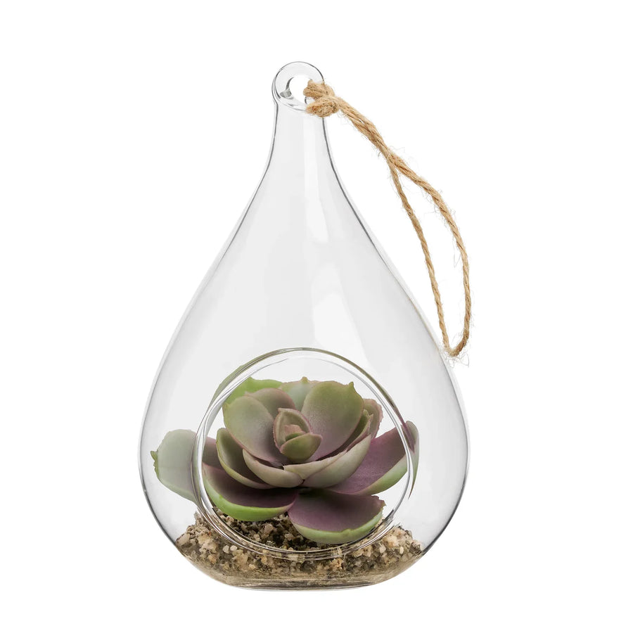 HANGING GLASS TEARDROP POTTED SUCCULENT/ECHEVERIA 5''H