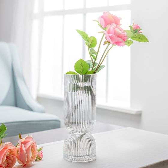 Refine your space with this gorgeous glass vase. With it's pink lustre finish, delicate ribbed detailing, and refined shape, this vase creates an eye-catching centerpiece or dramatic display on a shelf or table. Fill with fresh or faux flowers for a feeling of sophistication and beauty.