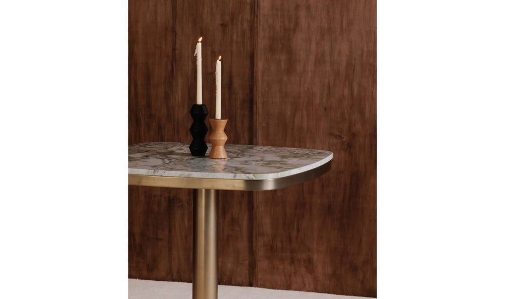 Inspired by Constantin Brâncuși’s “Endless Column,” the Sequence candle holders come in small and large and create a stunning contrast in form and color when placed together. Artfully crafted, the taller candle holder features a rounded edge while the shorter one has angled edges — together, they bring an element of timelessness, providing warmth & ambiance to any space.