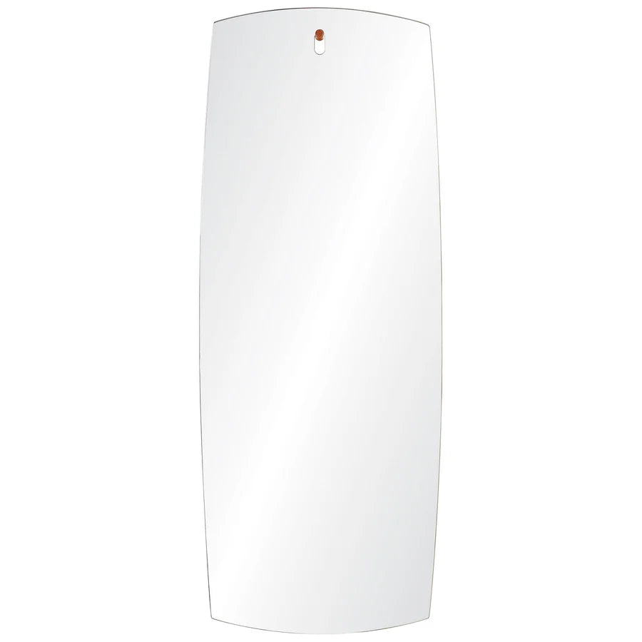 Accessorize modern walls with the minimalist appeal of this decorative wall mirror. A slightly beveled edge enhances the geometric mirror’s full-length rectangular shape and slightly bowed edges while a notch at the top of the looking glass suspends the mirror from the wall by a simple peg. The style is austere, yet elegant – perfect for rooms with an appreciation for simple design forms.
