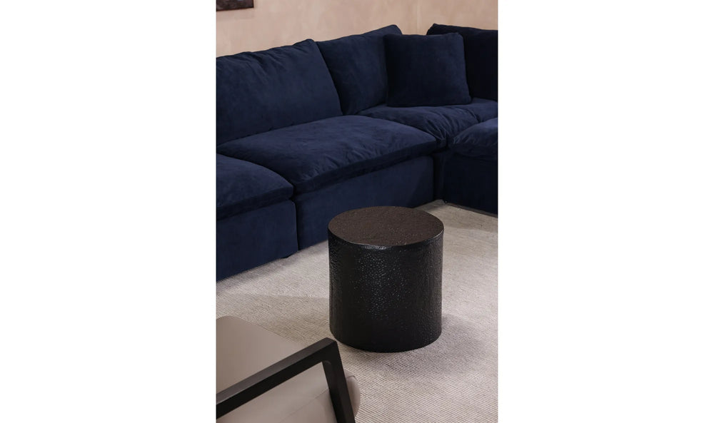 Inspired by the Brutalist movement, the Aulo is a hymn to texture and materiality. The indented finish lends a raw and unrefined aesthetic to the rounded form of this dramatic side table. Its detailed tactility underscores the sculptural quality to create a visually fulfilling and physically interesting gravity that draws the attention of even the most discerning eye.