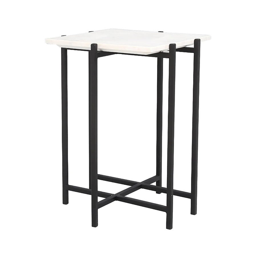 - Engaging white marble and black iron legs give an art deco look